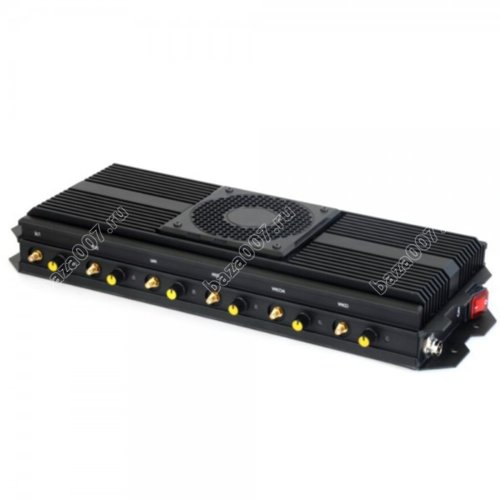 | Особенности: | 1. В комплекте поставляется специальный кабель для антенн 2. Уровень подавления связи от 50-150 метров 3. Питание от сети 220 V 4. Два внешних вентилятора охлаждения 5. Беспрерывная работа. |